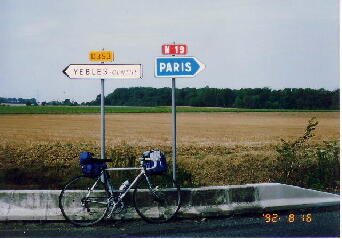 第3章 そして花の都へ 〜フランス〜 スイス・フランス国境 レマン湖のほとり、ロ-ザンヌから、私は再び針路を北にとった。セ-ヌ川沿いにフランスを北 上し、最終目的地、パリへ向かうためである。アルプスを越えた後、レマン湖北岸にはなだら かな丘陵地帯がひろがっていた。私は、はるか彼方に見えるアルプスに別れを告げながら、ス イス・フランス国境へ向かった。 国境のゲ-トが見えた。スイス側のゲ-トでは、パスポ-トチェックがあった。が、スイス出国の スタンプはもらえなかった。すぐそばにフランス側のゲ-トがあった。様子を見ていると、こちら の方はほとんどフリ-パスで通過させているようである。私は、スタンプが欲しかった。「通りなさ い。」と言われる前にまずパスポ-トを見せねばならない。係官が何も言わないうちからパスポ- トを取り出して差し出した。が、係官はそれをチラリと見ただけで、にっこり笑って 「どうぞ。」 だった。残念なことに、ここでもスタンプはもらえなかった。仕方がないので、また係官に頼ん で、国境線上に立って写真を撮ってもらった。そんな訳で、私のパスポ-トには、スイスとフラン スの出入国のスタンプは、今も押されていないままである。 やはりここでもイタリア・スイス国境と同様に、国境と聞いて思い浮かべる厳しい雰囲気はま ったくなかった。せいぜい、高速道路の料金所を通過する程度の感じだった。ヨーロッパが一 つの大きな国になりつつあるのが、実感として感じられた。 フランス側のゲートを出たら、大きく"FRANCE"と記された標識があった。いよいよ、ファイナ ルステージのフランスである。 ![]() スイス・フランス国境 ボンジュール、ボンジュール フランスに入って、ますます英語が通じにくくなった。イタリアも英語の通じにくい国だったが、 フランスはそれ以上だった。感覚的に、道行く人をつかまえて、英語が通じる確率は、フランス では10人に一人というとこだろうか。欧米先進諸国で最も英語が通じにくいというのがうなずけ た。 私はどこの国に言っても、挨拶だけは礼儀としてそこの国の言葉でするべきだと思っている ので、フランス語も挨拶だけは知っておいた。しかし、私が憶えたフランス語は例によって、ボ ンジュール(こんにちは)、パルドン(すいません)、メルスィ(ありがとう)の最重要サバイバル単 語とウイ&ノン(はい&いいえ)のみであり、後は会話集に頼るしかなかった。ツェルマットのユ ースホステルで一緒になったフランス人の大学生に、 「年配の人はダメだけれども、若い人なら英語を話す人は多いよ。」 と聞いていた通り、10代 20代位の人だと英語を話せる人が比較的多かったが、それでも、フラ ンスでは言葉でとても苦労しながらのツーリングとなった。 フランスと英語と言うと、よくフランス人は自分達の言語に誇りを持っており、英語を知ってい ても使わないと言われる。しかし、私の見たところでは、一般的にはそんなことはないように思 う。英語を知っていても使わないじゃなくて、英語を知らない人が多いのではないか。フランス の外国語教育のことは全然知らないが、フランス語は英語よりもスペイン語やイタリア語に近 いから、学びやすいスペイン語やイタリア語を学習した人が多いのではないだろうか。 また、これもまったくの推測だが、知っていても使わないと言うことがあったとすれば、それ は、決して悪意ではなく、フランス語に誇りを持っていることもあるのだろうけれども、それ以上 にフランス語がヨーロッパでは通用範囲が広い言語であるために、全世界的には英語が一番 通じるという感覚が乏しく、まずはフランス語で話してみようとするためせいではなかろうか。 それに、「目の前に困っている人がいて、その人は英語しか使えない。それでも、英語は知っ ていても使わない。」と言う人がいたら、それは、誇り高きフランス人というより、単に意地が悪 い人と言うべきであろう。 我欲烏龍茶 言葉でずいぶん苦労しながら、ワインとグルメの王国(らしい)ブルゴーニュの中心都市・ディ ジョンにやってきた時のことである。ローマを出発して以来、パンとパスタばかり食べていたの で、米が食べたくなってきた。外国に行くと、特にツーリング等で体に負担がかかっているとき は、身体の方がそれまで食べ慣れたものを欲しがるようだる。 例によって、ユースホステルに部屋を取った後、中華料理店を捜しに出かけた。中華料理は 安いし、世界中どこに行っても、ちょっとした町には中華料理店の一軒くらいはあるものだ。日 本料理は一般に高いし、「何じゃこれは?」という味の時さえある。北米ツーリングの時、コロラ ド州のボールダーで、同じように米が食べたくなってきて、寿司屋に入ったことがあった。店の つくりはちゃんとした寿司屋であり、値段もそれなりの値段だったのだが、スーパーのパック入 りの寿司のような味でゲッソリしてしまっ